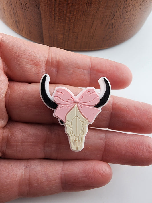Custom exclusive silicone beads collab bull skull with bow focal 15mm print