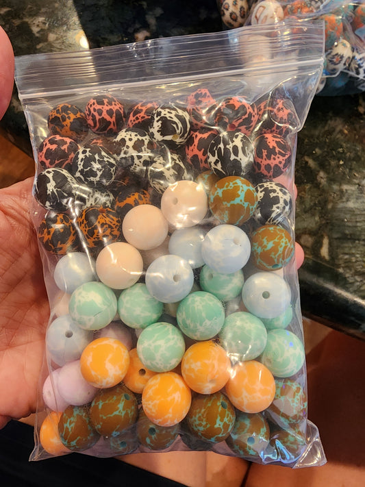 Custom exclusive silicone beads 15mm print bead cowprint and aztec bags