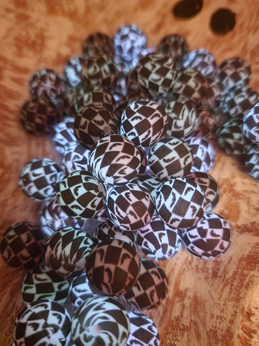 Custom exclusive print silicone beads 15 millimeter glow checker bats