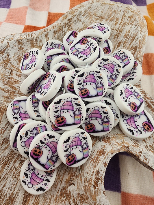 Custom exclusive silicone beads halloween pumpkin frappuccino cow and ghost print beads