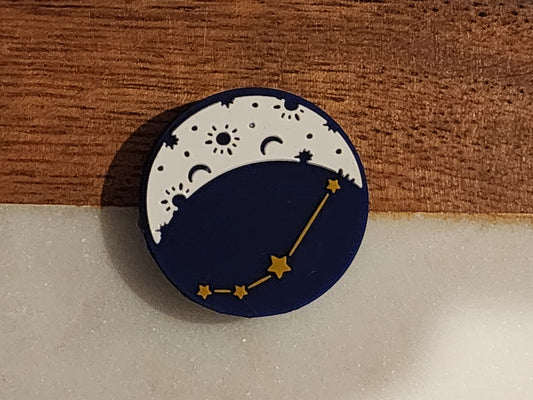 Double sided zodiac silicone focal bead