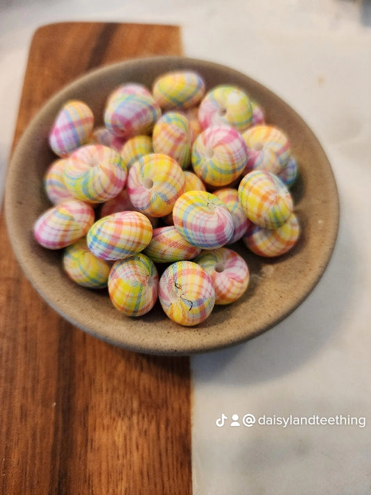 Easter Plaid Silicone Printed Beads - 15mm | Round, Hexagon or Abacus