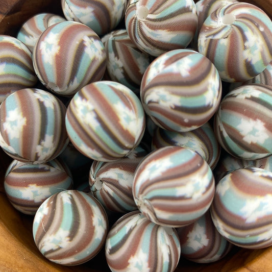 Exclusive Aztec Boho Swirl 15mm Silicone Print Bead