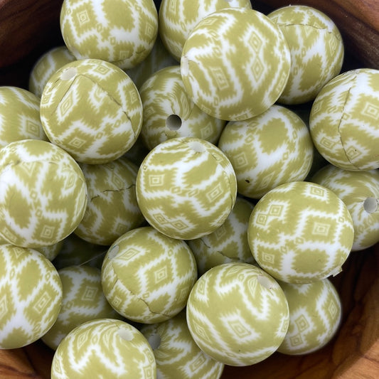Exclusive Mustard Aztec Tribal 15mm Print Silicone Bead