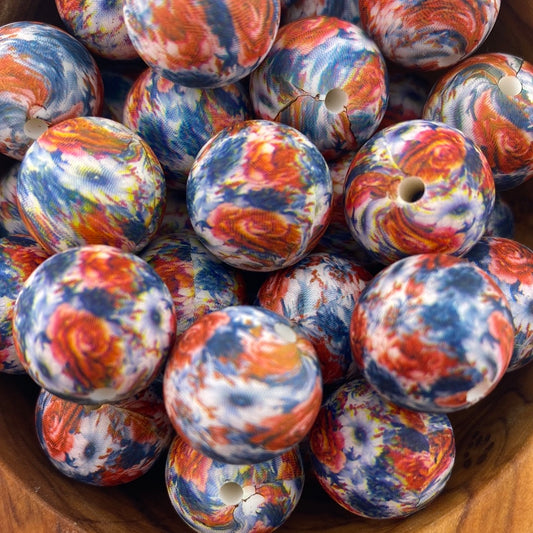 Exclusive America Red White and Blue Flower 15mm Print Silicone Bead