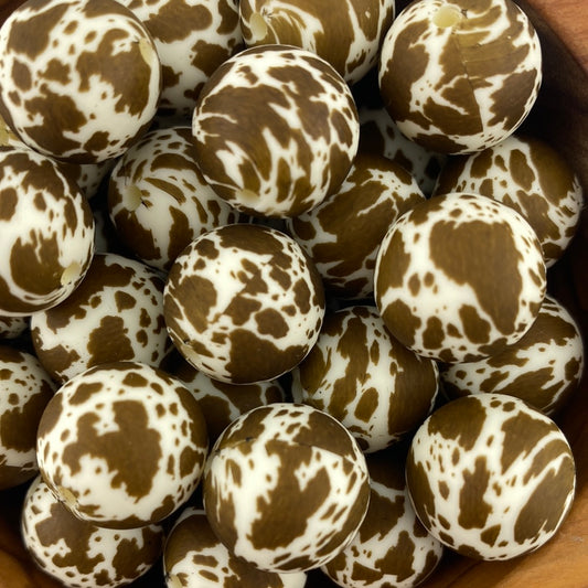 Exclusive Brown on Cream Cow Hide 15mm Print Silicone Bead