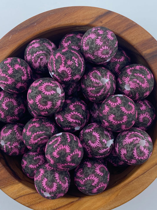 Exclusive Pink Cheetah 15mm Silicone Beads