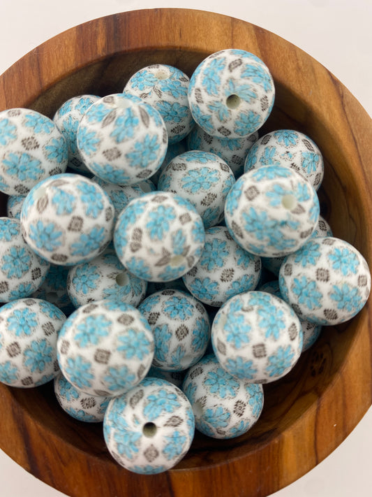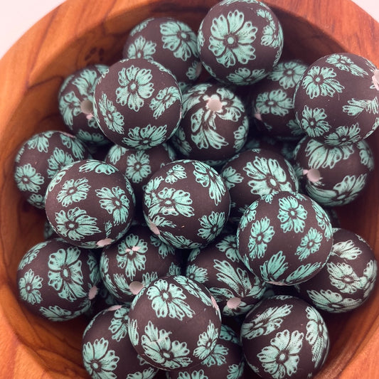 Exclusive Turquoise Leather 15mm Print Silicone Bead