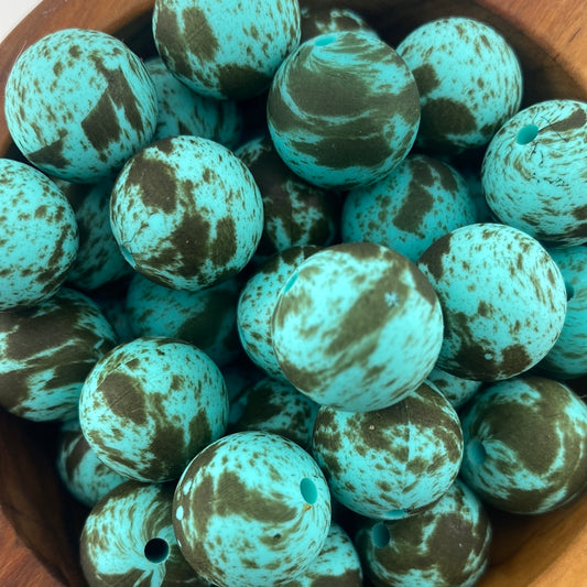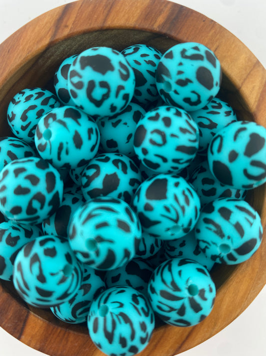 Exclusive Teal Cowhide 15mm Print Silicone Bead