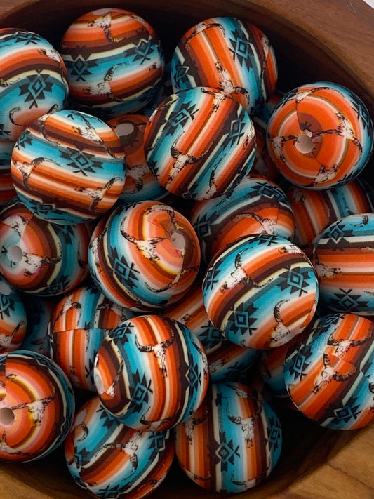 Exclusive Serape Aztec with Bull silicone print beads 15mm CUSTOM EXCLUSIVE COLLAB