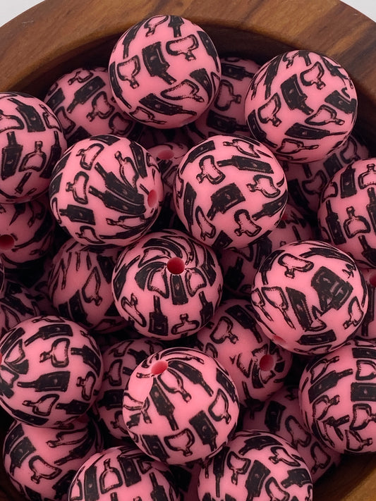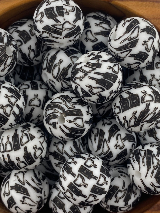 Exclusive White Liquor Bottle 15mm Print Silicone Bead