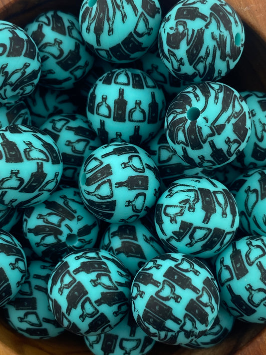 Exclusive Teal Liquor Bottle 15mm Print Silicone Bead