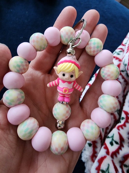Green guy and pink elf silicone wristlet keys