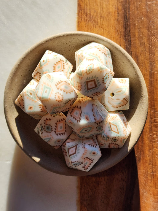 Pastel Boho Aztec Silicone Printed Beads - 15mm | Round or Hexagon