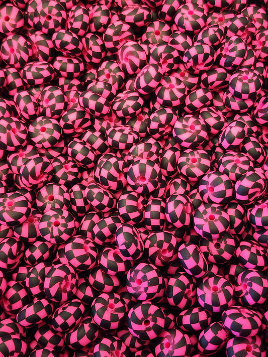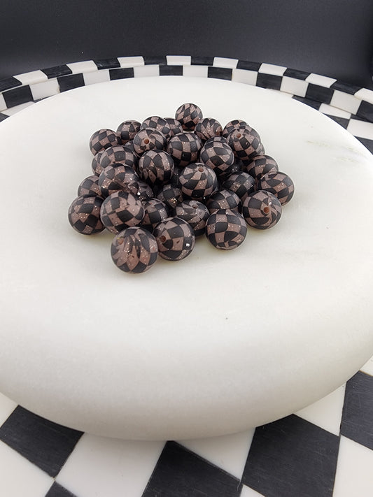 Custom exclusive print silicone beads 15 millimeter glow checker bats