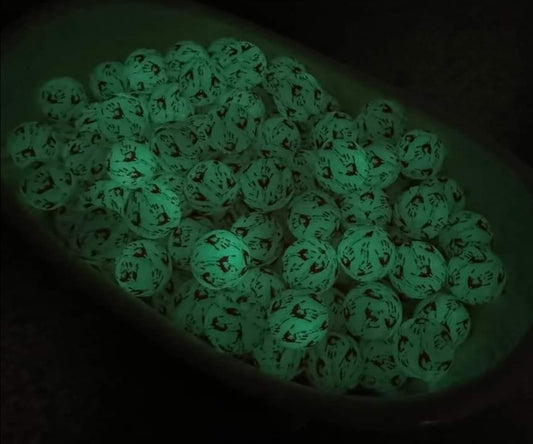 Custom exclusive bloody hands glow in the dark 15 millimeter print beads