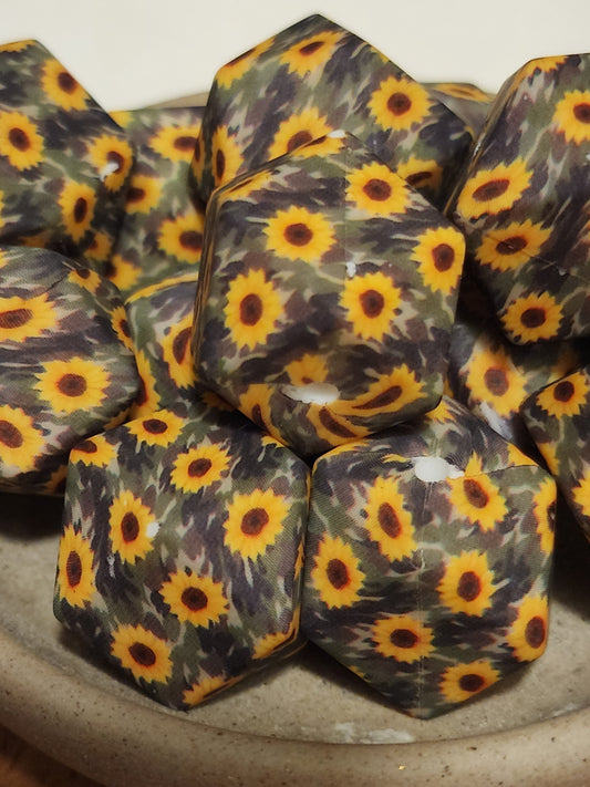 Exclusive cheetah sunflower print silicone 15mm beads -H4