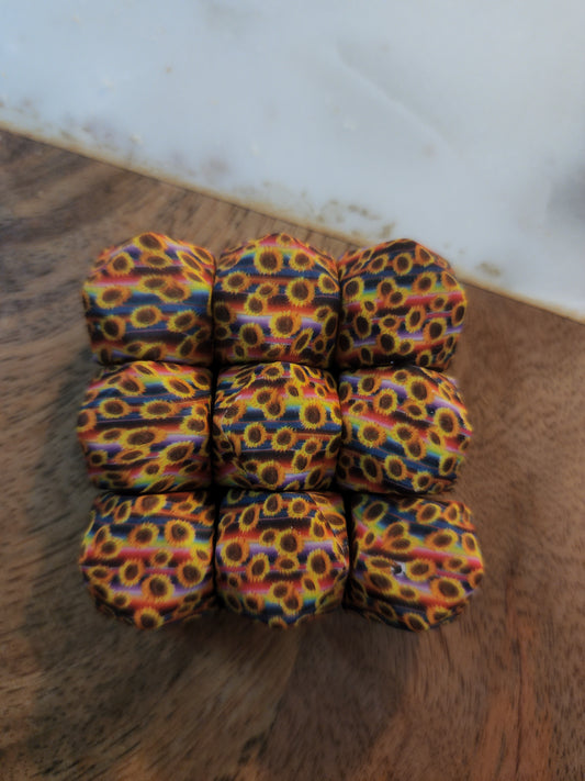 rainbow tie dye stripe sunflower print silicone 15mm beads