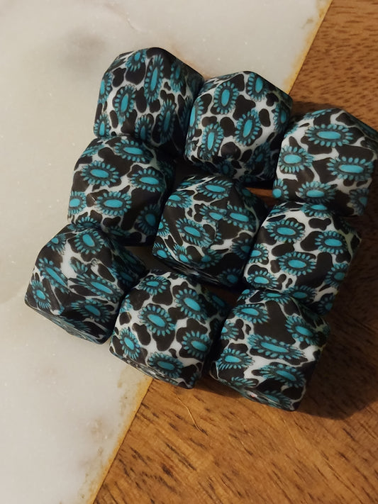 Western cow concho turquiose custom exclusive daisyland print 15mm silicone beads